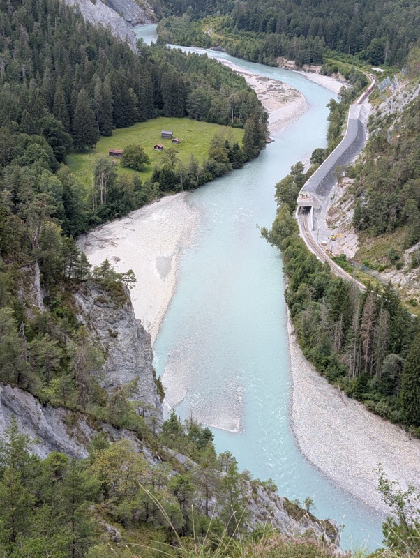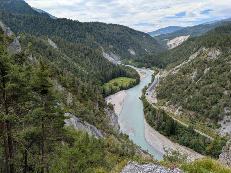 Weiter geht es durch etliche kurze Tunnels in Richtung Rheinschlucht. Immer wieder machen wir Halt, um die atemberaubende Landschaft, die der Rhein in Jahrmillionen geschaffen hat, zu bestaunen und zu fotografieren.