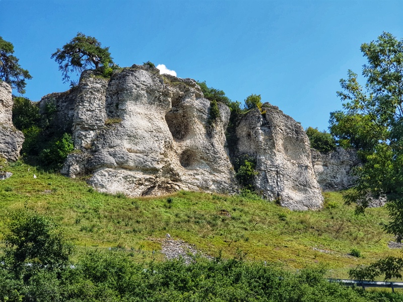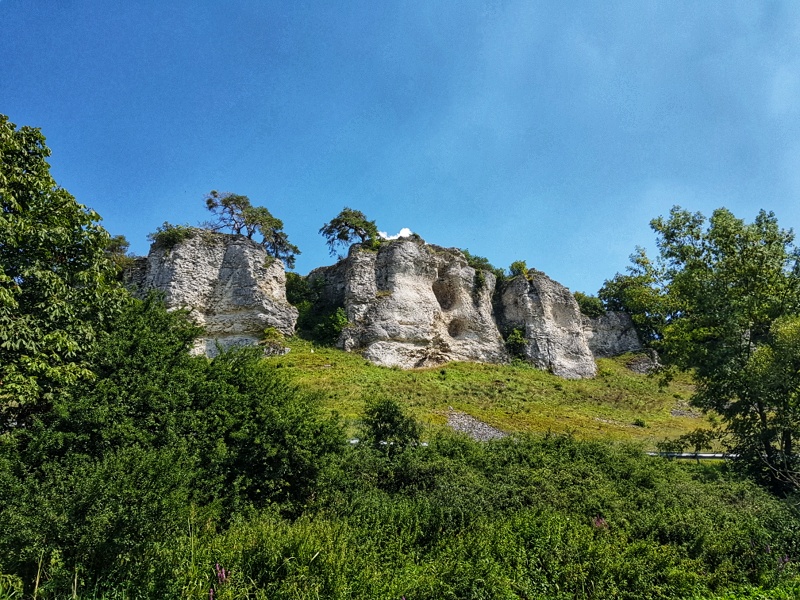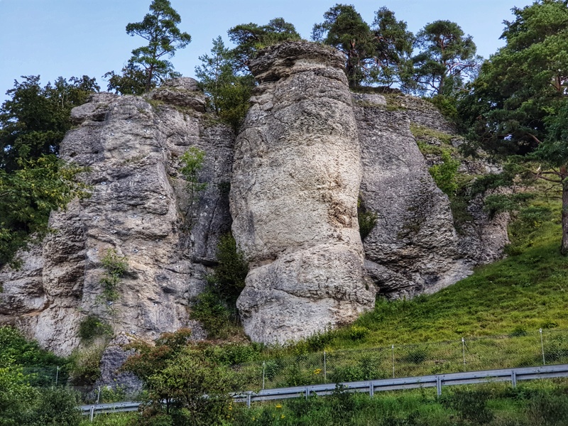 Fortbewegung und Blick auf die Landschaft ist eine ganz andere als mit dem Fahrrad. Die „zwölf Apostel“ sind plötzlich ganz nah. Es ist schön, sich treiben zu lassen und nur zu schauen. Nur am Wehr in Solnhofen begegnen uns andere Paddler, ansonsten sind wir allein unterwegs. Wir haben schon tagelange Kanu-Touren an Lahn und Spree gemeistert, aber jetzt strengt uns das Paddeln an, denn die Altmühl zeigt kaum Strömung. Trotzdem brauchen wir nur zweieinhalb Stunden für die Tour. Der krönende Abschluss ist die Rutsche am Wehr an der zahlreiche Zuschauer im Wasser stehen, in der Hoffnung, uns kentern zu sehen. Nur ein kräftiger Schwall Wasser landet im Boot. Das meiste fängt Kerstin auf.