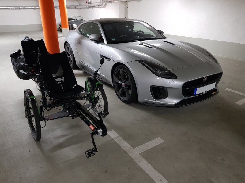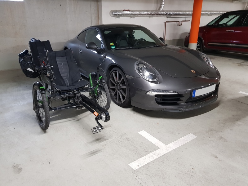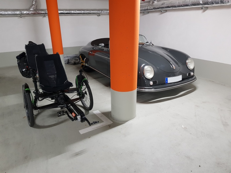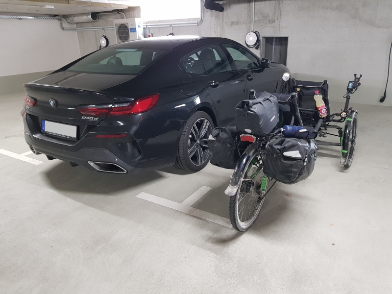 Bevor wir losfahren, konnte es sich unser Bambuk nicht verkneifen, Mitparker in der Tiefgarage in seinem Glanz erstrahlen zu lassen.